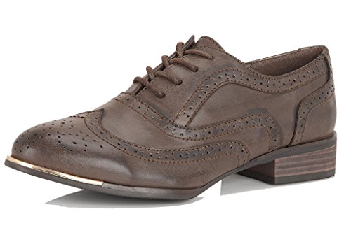 These androgynous ladies' brogues from Dolcis are given a chic new season makeover with the incorporation of a fashionable gilt trimr, stacked wooden sole unit and traditional wingtip detailing. Wear yours loud and proud with your favourite skinny jeans or pair with a ditsy summer dress for a chic girly option.