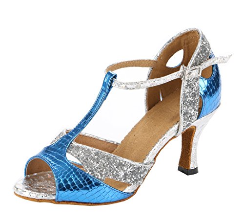 Best Seller! TDA Women's Stylish T-strap Peep Toe Glitter Blue Synthetic Salsa Tango Ballroom Latin Modern Dance Wedding Shoes 2 M UK Review